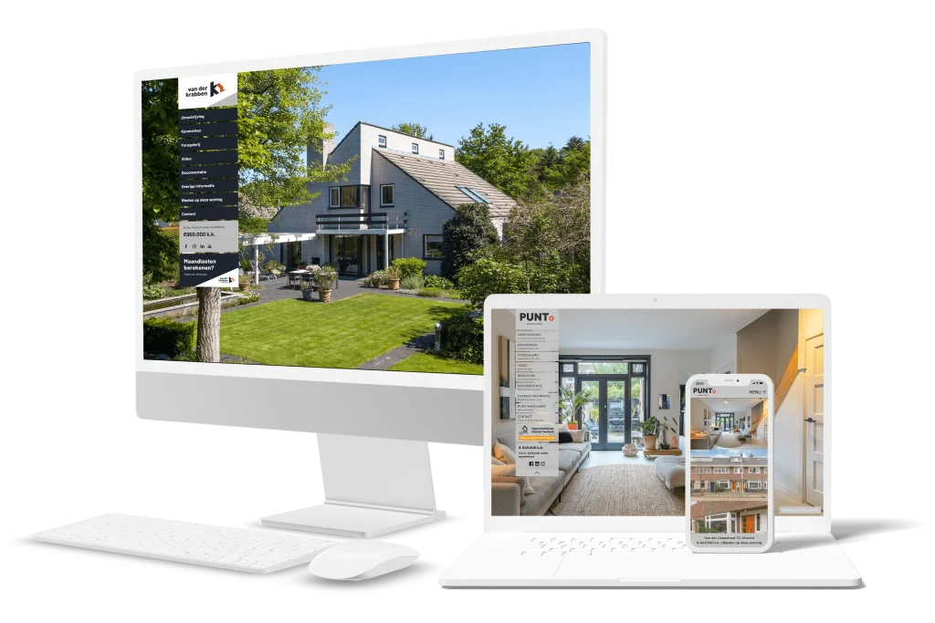 Centraal in onze dienstverlening staat ons hoofdproduct: de individuele woningwebsite met unieke domeinnaam welke dient als digitale brochure/digitaal dossier van het object. Deze domeinnaam komt terug in de aanverwante diensten. Dit zijn ondersteunende oplossingen om het object maximaal onder de aandacht te brengen.