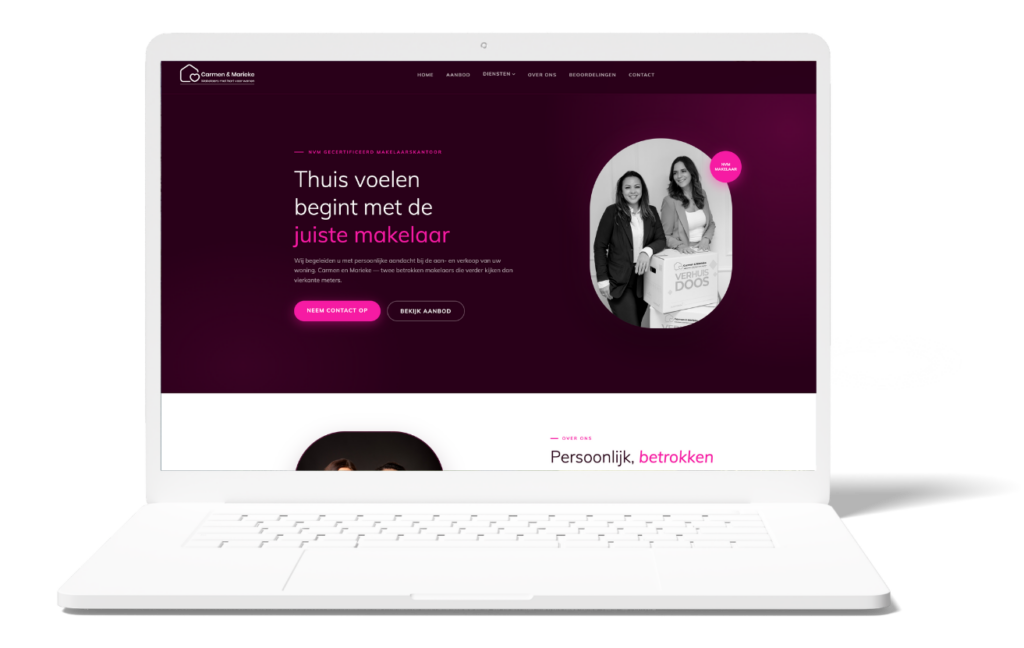 Met meer dan 10 jaar ervaring in de makelaarsbranche weten wij precies wat nodig is om online op te vallen en nieuwe verkoopopdrachten binnen te halen. Daarom ontwikkelen wij maatwerk makelaarswebsites die niet alleen professioneel ogen, maar ook écht bijdragen aan uw zichtbaarheid en conversie. Geen standaard templates, maar een uniek ontwerp dat volledig aansluit bij uw kantoor, gecombineerd met een sterke SEO-structuur en slimme koppelingen met Realworks of Tiara.